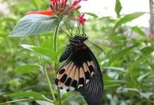 金裳凤蝶是凤蝶科、裳凤蝶属的动物。金裳凤蝶身体呈黑色,头、颈和胸侧有红毛,腹部有黑黄两色相间条纹,雄蝶前翅黑色,具黑天鹅绒光泽,各脉两侧灰白色,后翅金黄色,各室外缘有等腰三角形黑斑1枚,斑内侧有晕,…全部>>