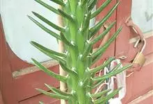 金刚纂,是大戟科大戟属的肉质灌木状小乔木。茎圆柱状,上部多分枝,叶片互生,少而稀疏,顶端钝圆,基部渐狭;花序二歧状腋生,苞叶膜质,总苞阔钟状,裂片半圆形,边缘具缘毛,雄花多枚;花期6-9月。…全部>>