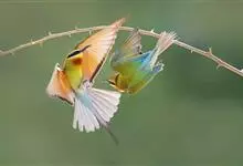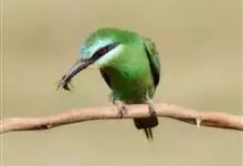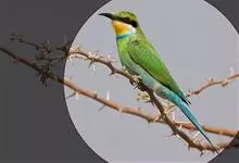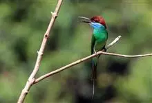 蓝颊蜂虎:是蜂虎科、蜂虎属的鸟类,共有2个亚种。体长27-33厘米,翼展46-49厘米,体重38-50克。嘴形细长而下弯,先端尖,…全部>>