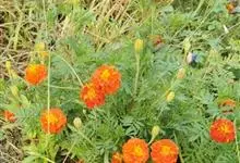 万寿菊是菊科万寿菊属一年生草本植物,别名孔雀菊、缎子花、臭菊花、西番菊、红黄草、小万寿菊、臭芙蓉、孔雀草。万寿菊茎近基部分枝。叶羽状分裂,长5-10厘米,宽4-8厘米,裂片长椭圆形或披针形,具锐齿,…全部>>