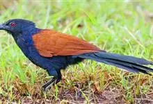 褐翅鸦鹃,是鹃形目鸦鹃科鸦鹃属的鸟类。褐翅鸦鹃的身体为黑色;头颈和胸带蓝紫色金属光泽并具黑亮的羽干纹,下胸至腹部泛金属绿光泽;两翼和肩部为棕栗色,外侧飞羽具暗色羽端,尾羽闪铜绿色光泽;虹膜赤红色,…全部>>