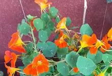 旱金莲是旱金莲科旱金莲属蔓生一年生草本植物。叶互生,叶柄向上扭曲,盾状,叶圆形,具波状浅缺刻,下面疏被毛或有乳点;花黄、紫、桔红或杂色,花托杯状,花瓣为圆形,边缘具缺刻;果实为扁球形;花果期6-10月,…全部>>