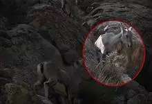 岩羊是偶蹄目牛科岩羊属哺乳动物。颜色与岩石相像,两性皆具角,雄羊角大而弯曲,角外表具不明显的横棱且体壮实,雌羊角短小;头较小,眼大,耳小,颏下无须;体背面为棕灰或石板灰色略有蓝色反光,…全部>>