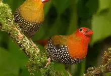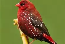 红梅花雀小型鸟类,体长9-10厘米。雄鸟通体朱红色,背、肩、胸等满布白色小斑点,两翅和尾黑褐色均具白色端斑,嘴红色,脚蜡黄色。雌鸟上体淡褐色或赭褐色,翅上中覆羽、大覆羽和内侧飞羽末端具白色斑点,…全部>>