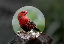 红梅花雀小型鸟类,体长9-10厘米。雄鸟通体朱红色,背、肩、胸等满布白色小斑点,两翅和尾黑褐色均具白色端斑,嘴红色,脚蜡黄色。雌鸟上体淡褐色或赭褐色,翅上中覆羽、大覆羽和内侧飞羽末端具白色斑点,…全部>>