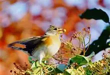 金翅雀:是雀形目雀科金翅雀属的小型鸟类。体长12-14厘米。嘴细直而尖,基部粗厚,头顶暗灰色。背栗褐色具暗色羽干纹,腰金黄色,尾下覆羽和尾基金黄色,翅上翅下都有一块大的金黄色块斑,…全部>>