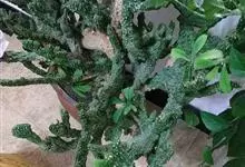 金刚纂,是大戟科大戟属的肉质灌木状小乔木。茎圆柱状,上部多分枝,叶片互生,少而稀疏,顶端钝圆,基部渐狭;花序二歧状腋生,苞叶膜质,总苞阔钟状,裂片半圆形,边缘具缘毛,雄花多枚;花期6-9月。…全部>>