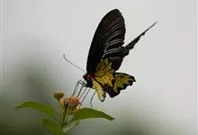 金裳凤蝶是凤蝶科、裳凤蝶属的动物。金裳凤蝶身体呈黑色,头、颈和胸侧有红毛,腹部有黑黄两色相间条纹,雄蝶前翅黑色,具黑天鹅绒光泽,各脉两侧灰白色,后翅金黄色,各室外缘有等腰三角形黑斑1枚,斑内侧有晕,…全部>>