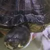 黑颈乌龟是龟鳖目淡水龟科乌龟属爬行动物;别名广东乌龟、广东草龟、黑点龟、黑颈水龟。黑颈乌龟体形较大,头较大,吻钝,略突出于上喙。头顶部黑色,侧面有黄绿色条纹;背甲黑色或棕褐色;中央有一条明显的脊棱,…全部>>
