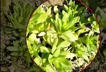 垂盆草别名石头菜、狗牙瓣、豆瓣菜等,为景天科景天属的多年生草本植物。不育枝及花茎细,匍匐而节上生根,直到花序之下;3叶轮生,叶倒披针形至长圆形,先端近急尖,基部急狭,有距;聚伞花序,花无梗,…全部>>