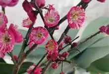宫粉梅 Rehd.)是蔷薇科、李属植物,梅花品系中真梅系直枝梅类宫粉型,其花复瓣至重瓣,呈或深或浅的红色。落叶乔木,高达10米。树干褐紫色,有纵驳纹,小枝细而无毛,多为绿色。叶广卵形至卵形,…全部>>