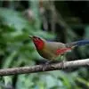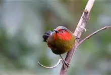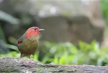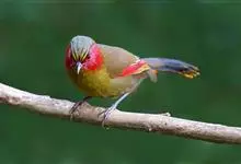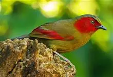 红翅薮鹛是噪眉科、薮鹛属中型鸟类,体长21-24厘米。头顶灰褐色,头侧和颈侧赤红色,上体橄榄褐色,翅上具红色块斑,尾具红色或橙黄色块斑,下体灰色沾褐。虹膜褐色或红色,嘴黑色,脚暗褐色或淡灰褐色。…全部>>