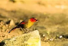 金眼鹛雀是莺科、鹛雀属小型鸟类。体长16-20厘米。头顶和上体棕褐色,两翅表面肉桂红色,尾褐色具明暗相间横斑。眼周金黄色,眼先、眼上、眼下、颊以及颏、喉和上胸概为白色,其余下体茶黄色,脚橙黄色。…全部>>