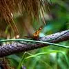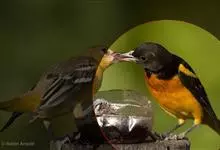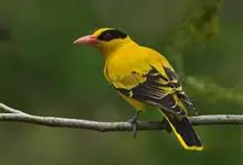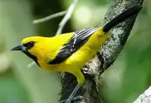 金黄鹂是中型鸣禽。体长24厘米。头全黄色。体羽鲜丽,主要由为黄和黑的颜色组合,雌鸟与幼鸟多具条纹。雄性成鸟眼先、翼及尾基部黑色,其余为鲜亮黄色。雌鸟较暗淡而多绿色。幼鸟偏绿色,下体具细密纵纹。虹膜红…全部>>