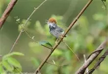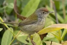 黑喉缝叶莺:体长11.5厘米,是一种小型的顶冠棕色、腹部白色的莺。尾甚长而常上翘,臀黄色,具特征性的偏黑色喉,上体橄榄绿色,头侧灰色。雌鸟色暗,头少红色且喉少黑色。与长尾缝叶莺的区别在后顶冠亦为棕色,…全部>>