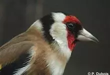 红额金翅雀:共有14个亚种。小型鸟类,体长12-14厘米。额、脸颊和颏朱红色,眼先和眼周黑色,在淡色的头部极为醒目。上体灰褐或乌褐色,尾上覆羽白色,两翅和尾黑色,翅上有黄色斑。下体喉、胸灰褐或乌褐色…全部>>