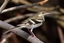 山鹡鸰:是中等体型的林鹡鸰,体长约17厘米,主要羽色为褐色及黑白色。头部和上体橄榄褐色,眉纹白色,从嘴基直达耳羽上方,下体白色,胸部具有两道黑色横斑纹,下面的横斑纹有时不连续。两翼黑褐色,…全部>>