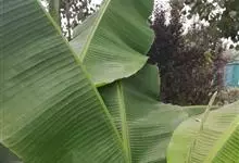 香蕉’),芭蕉科芭蕉属多年生草本植物,植株丛生,有匐匍茎;假茎浓绿有黑色斑点;叶片长圆形,上面为深绿色,无白粉,下面浅绿色;花朵为乳白色或淡紫色;果实呈弯曲的弓状,有棱,果皮为青绿色,…全部>>