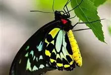 金裳凤蝶是凤蝶科、裳凤蝶属的动物。金裳凤蝶身体呈黑色,头、颈和胸侧有红毛,腹部有黑黄两色相间条纹,雄蝶前翅黑色,具黑天鹅绒光泽,各脉两侧灰白色,后翅金黄色,各室外缘有等腰三角形黑斑1枚,斑内侧有晕,…全部>>