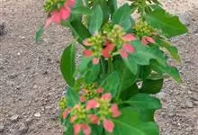 猩猩草:常绿或半常绿灌木,盆栽时株高0.5米-2米,在亚热带地区可长到6米以上。茎直立而光滑,单叶互生,卵状椭圆形至阔披针形,具不规则的深缺刻。长10-15厘米。花小,有蜜腺,排列成密集的伞房花序。…全部>>
