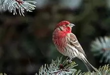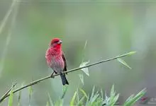 普通朱雀是雀形目雀科朱雀属鸟类,又名红朱雀、马料、青麻料。雄鸟上体红色,下体淡红色;头部、喉部、胸部及腰部亮红色;背部褐色染红色;两翼及尾黑褐色,羽缘染红色。雌鸟上体橄榄褐色,下体近白色,…全部>>