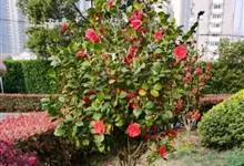 滇山茶:灌木至小乔木,有时高达15米,嫩枝无毛。叶阔椭圆形,上面干后深绿色,发亮,下面深褐色,无毛,侧脉6-7对,边缘有细锯齿。花顶生,红色,直径10厘米,无柄;苞片及萼片10-11片,花瓣红色,…全部>>