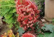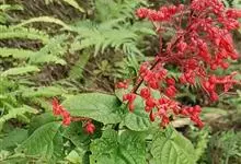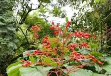 赪桐 Sweet)是唇形科、大青属灌木,高1-4米,叶片圆心形,顶端尖或渐尖,基部心形,边缘有疏短尖齿,表面疏生伏毛,二歧聚伞花序组成顶生,大而开展的圆锥花序,花序的最后侧枝呈总状花序,花萼红色,…全部>>