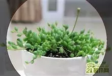 珍珠吊兰因鼓鼓、饱满翠绿的椭圆形小叶子形似珍珠状而得名。又名翡翠珠、 佛珠吊兰、翡翠珠、绿之铃,绿铃。菊科千里光属多肉植物,花期一般是当年的12月至翌年1月。珍珠吊兰性喜富含有机质的、疏松肥沃的土壤。…全部>>
