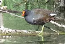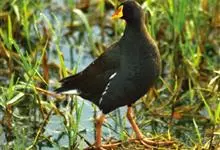 黑水鸡:是鹤形目、秧鸡科的鸟类,共有12个亚种。中型涉禽,体长24-35厘米。嘴长度适中,鼻孔狭长;头具额甲,后缘圆钝;嘴和额甲色彩鲜艳。翅圆形,第2枚初级飞羽最长,或第2枚和第3枚初级飞羽等长,…全部>>