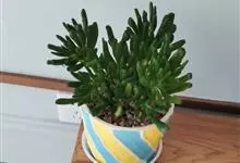 筒叶花月,是景天科青锁龙属的多年生草本植物。植株多分株,灌木状,茎较粗壮,圆柱形,表皮灰褐色;叶片肉质,互生,呈圆筒状,簇生于茎或分枝顶端,叶端呈斜截形,截面为椭圆形;花呈星状,淡白色;花期秋季。…全部>>