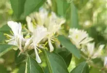 山银花在华南地区野外山林生长。木质藤本,长2~5m。树皮黄褐色渐次变为白色,嫩时有短柔毛。叶对生,卵圆形至椭圆形,长4~8cm,宽3.5~5cm,上面绿色,主脉上有短疏毛,下面带灰白色,密生白色短柔…全部>>