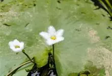 金银莲花 Kuntze)是睡菜科莕菜属的多年生水生草本。茎圆柱形,不分枝;单叶顶生,叶漂浮,近革质,呈宽卵圆形或近圆形,有不明显掌状脉;花萼裂至近基部,裂片呈长椭圆形或披针形,花冠为白色,基部黄色,…全部>>
