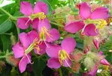 星毛金锦香,为野牡丹科、金锦香属灌木,高1—1.5米;茎四棱形,被密或疏平贴的糙伏毛。叶片纸质,披针形至卵状披针形,稀卵形,顶端渐尖,基部钝或近圆形。长6-10厘米,宽1,8-3.4厘米,…全部>>
