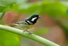 黄腹山雀是雀形目山雀科山雀属鸟类。虹膜褐色或暗褐色;嘴蓝黑色或灰蓝黑色;头、喉胸斑黑色,颊斑、颈后斑白色;上体蓝灰色,腰银白色;翼具两排白色点斑;下胸、腹鲜黄色;尾黑色,…全部>>