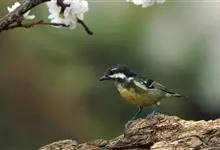 黄腹山雀是雀形目山雀科山雀属鸟类。虹膜褐色或暗褐色;嘴蓝黑色或灰蓝黑色;头、喉胸斑黑色,颊斑、颈后斑白色;上体蓝灰色,腰银白色;翼具两排白色点斑;下胸、腹鲜黄色;尾黑色,…全部>>