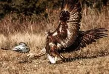 金雕:属于鹰科、雕属的猛禽。体长76-102厘米,翼展达2.3米,体重2-6.5千克。雌雄同色。未成年时,头、颈黄棕色;两翼飞羽除了最外侧三枚外基部均缀有白色,其余身体部分暗褐色;羽尾灰白色,…全部>>