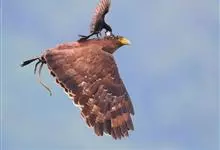 短趾雕:体长62-70厘米,体重1.2-2.3千克。它们的颔、颈和胸部上方呈浅棕色。头部浑圆像猫头鹰般,眼睛呈鲜黄色。身体沉重,上体灰褐,下体白而具深色纵纹,喉及胸单一褐色,腹部具不明显的横斑,…全部>>