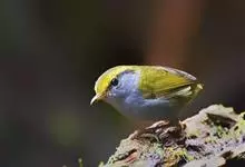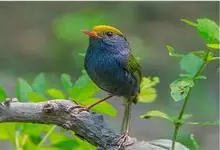 金冠地莺:形态与灰腹地莺相似,上体橄榄绿,前额至头顶渲染亮金黄色;下体几乎纯暗石板灰色,下嘴基部橙红色或橙黄色。虹膜褐色;上嘴角褐色,下嘴基部橙红色或深橙黄色直至嘴尖;跗跖和趾褐色,爪褐色。…全部>>