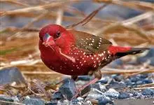 红梅花雀小型鸟类,体长9-10厘米。雄鸟通体朱红色,背、肩、胸等满布白色小斑点,两翅和尾黑褐色均具白色端斑,嘴红色,脚蜡黄色。雌鸟上体淡褐色或赭褐色,翅上中覆羽、大覆羽和内侧飞羽末端具白色斑点,…全部>>