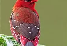 红梅花雀小型鸟类,体长9-10厘米。雄鸟通体朱红色,背、肩、胸等满布白色小斑点,两翅和尾黑褐色均具白色端斑,嘴红色,脚蜡黄色。雌鸟上体淡褐色或赭褐色,翅上中覆羽、大覆羽和内侧飞羽末端具白色斑点,…全部>>