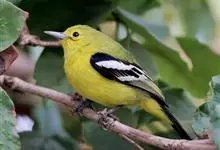 黑翅雀鹎:体重14-19克,体长11.5-16厘米。是树栖性绿色小鸟,外形与叶鹎相似,下体黄色。鸟喙直,翼长而尖,总体羽毛是绿色和黄色相结合,翼上具两道明显近白色横纹,翼近黑而羽缘白。…全部>>