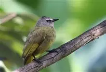 黄绿鹎,小型鸟类,体长19-22厘米。额至头顶暗褐具灰色羽缘,眼先黑色,其上面有一粗著的白纹从鼻后至眼,在黑色的头部极为醒目。上体橄榄绿褐色。颏、喉淡灰色或灰白色,胸灰褐色具橄榄黄色羽缘,…全部>>