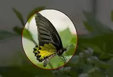 荧光裳凤蝶是凤蝶科裳凤蝶属的一种大型蝴蝶,该物种共有3个亚种。该蝶飞翔的时候姿态优美,前翅黑色,后翅金黄色和黑色交融的斑纹在阳光照射下金光灿灿,显得华贵美丽。幼虫寄主为多种马兜铃属的植物,取食马兜铃…全部>>