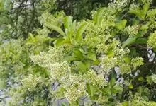 小叶女贞,木犀科女贞属落叶或半常绿灌木植物,茎干较高,小枝淡棕色,呈圆柱形,表面有细毛;叶子较大,呈长圆状椭圆形,上面深绿色,下面淡绿色;花白色,有香味,呈多边形;果实呈宽椭圆形,黑色,…全部>>