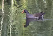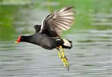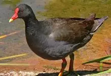 黑水鸡:是鹤形目、秧鸡科的鸟类,共有12个亚种。中型涉禽,体长24-35厘米。嘴长度适中,鼻孔狭长;头具额甲,后缘圆钝;嘴和额甲色彩鲜艳。翅圆形,第2枚初级飞羽最长,或第2枚和第3枚初级飞羽等长,…全部>>