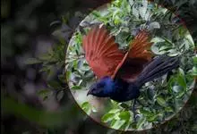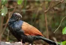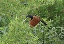 褐翅鸦鹃,是鹃形目鸦鹃科鸦鹃属的鸟类。褐翅鸦鹃的身体为黑色;头颈和胸带蓝紫色金属光泽并具黑亮的羽干纹,下胸至腹部泛金属绿光泽;两翼和肩部为棕栗色,外侧飞羽具暗色羽端,尾羽闪铜绿色光泽;虹膜赤红色,…全部>>
