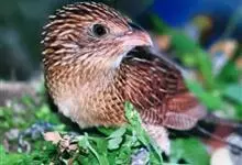 绿嘴地鹃:体形似小鸦鹃,但羽色大致绿灰;嘴绿色,头侧眼的周围有一裸区;后爪弯曲。虹膜赤红色,眼外周裸露皮肤繁殖期为赤红色,非繁殖期为暗红色。嘴绿色,基部及先端色暗,近嘴角处常沾红色,非繁殖期下嘴黄褐色,…全部>>