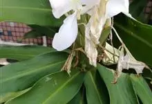 姜花又名野姜花。是姜科姜花属的多年生草本植物,茎高1-2米;叶片长圆状披针形或披针形,叶面光滑,叶背被短柔毛;穗状花序顶生,椭圆形,花芬芳,白色;蒴果卵状三棱形,微黄绿色;种子鲜红色,具橘红色的假种皮。…全部>>