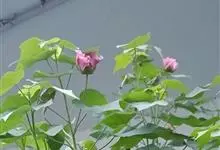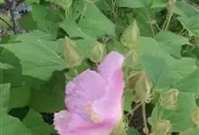 木芙蓉,锦葵科木槿属落叶灌木或小乔木。小枝上有细绒毛;叶片为卵状心形,托叶为披针形,常早落;花单生,花萼为钟形,花冠初为白色或淡红色,后逐渐变为深红色;果实为扁球形,有淡黄色的毛附着。花期8到10月。…全部>>