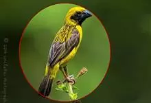 金黄鹂是中型鸣禽。体长24厘米。头全黄色。体羽鲜丽,主要由为黄和黑的颜色组合,雌鸟与幼鸟多具条纹。雄性成鸟眼先、翼及尾基部黑色,其余为鲜亮黄色。雌鸟较暗淡而多绿色。幼鸟偏绿色,下体具细密纵纹。虹膜红…全部>>